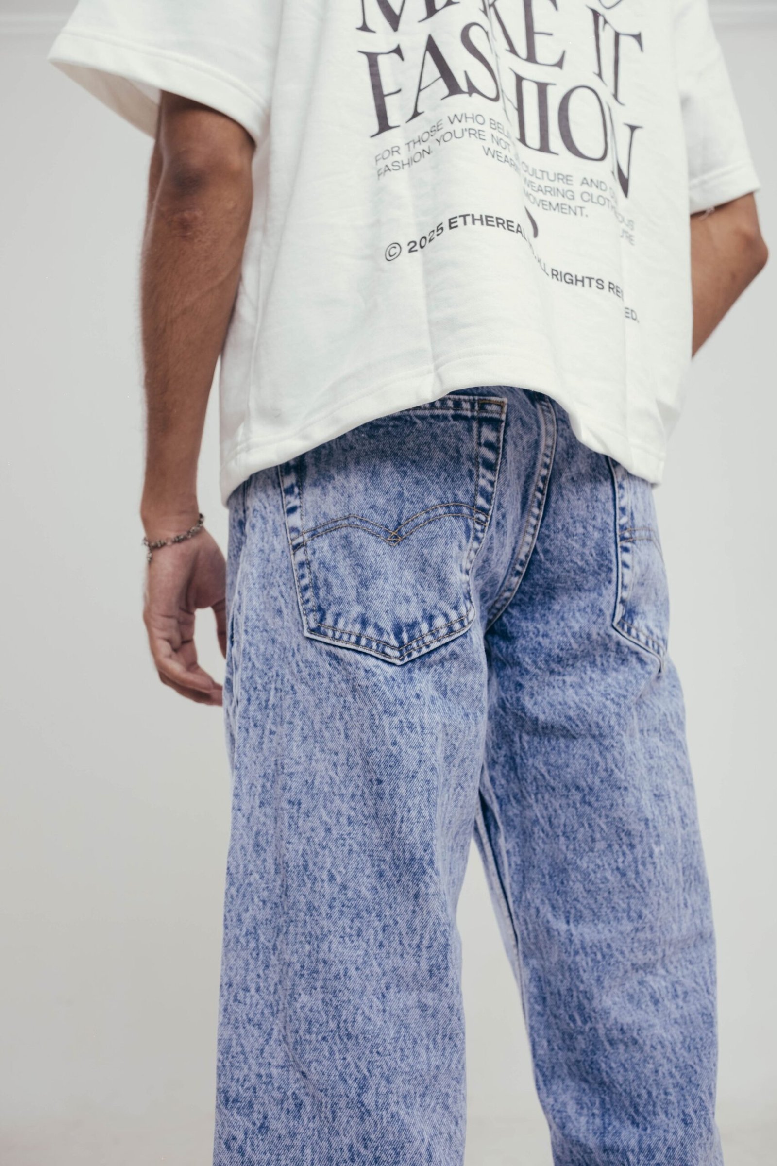 Crafted from premium-grade denim, each pair in the Ethereal Denim Series is fully customized — from exclusive Ethereal metal buttons to carefully developed washes and finishing. Designed in a relaxed straight fit that’s neither too baggy nor too tight, these jeans fall with a clean silhouette that works across any setting. Built for everyday wear with a refined edge.